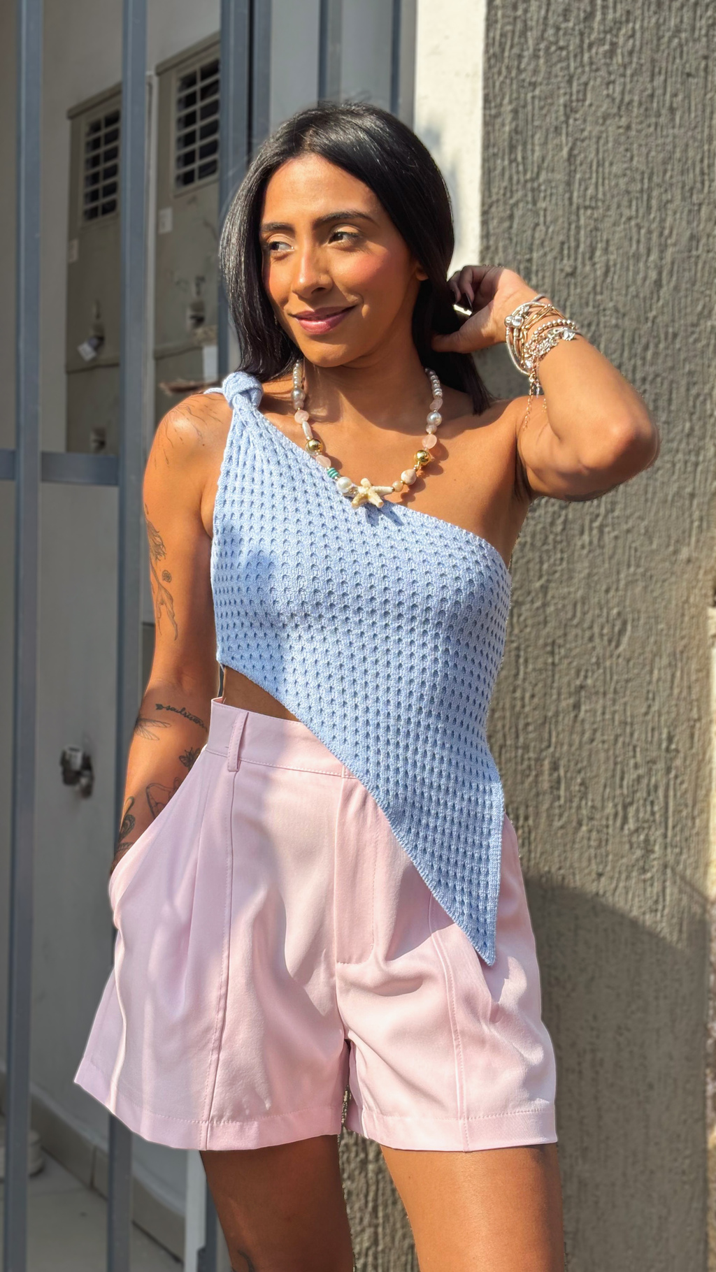 O modelo apresenta design assimétrico, com detalhe de nó no ombro e modelo nula manga, que trazem um ar contemporâneo e elegante à produção. Versátil e atemporal, combina facilmente com alfaiataria, saias ou jeans, compondo looks do dia à noite com muito charme.
